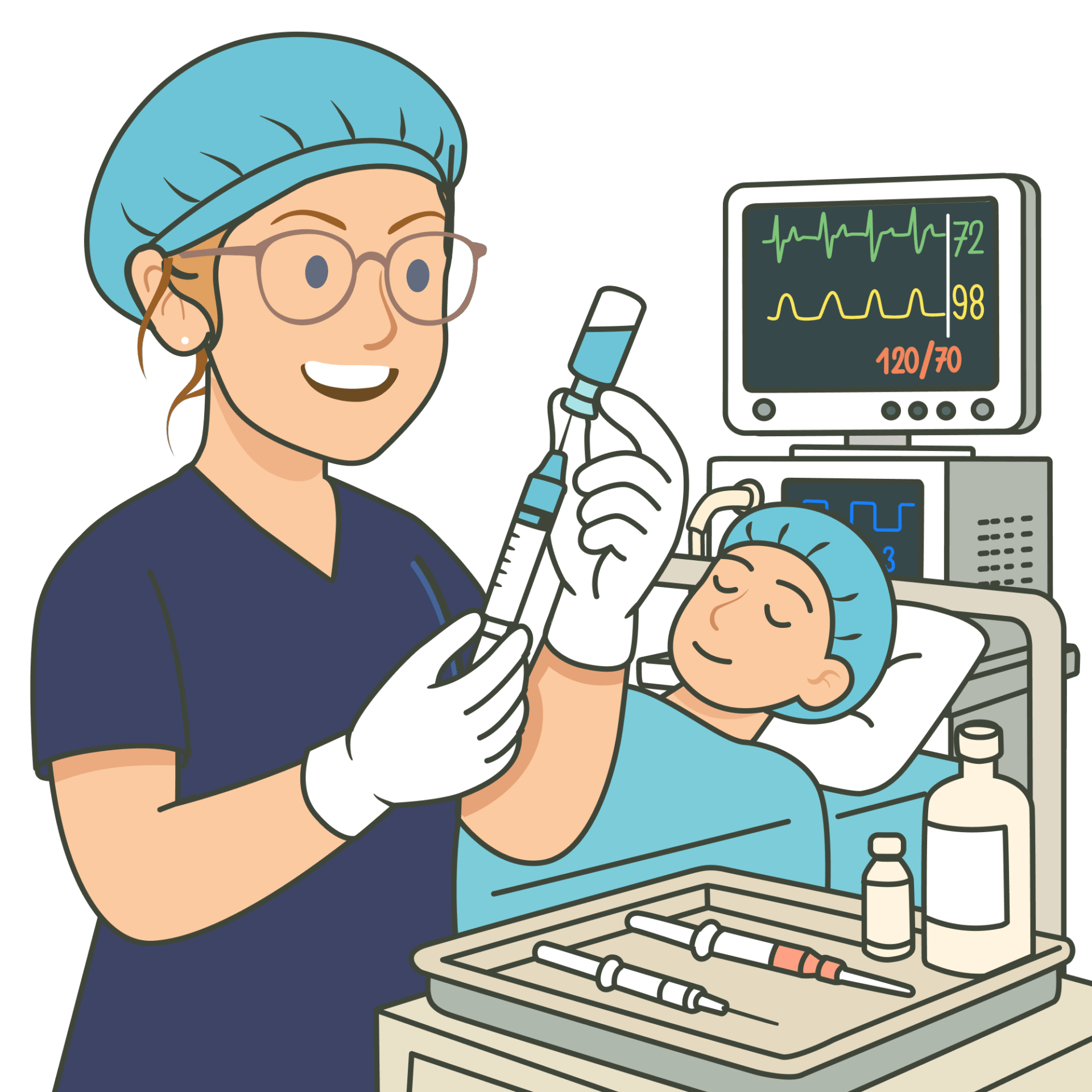 Am Operationstag werden Sie vom Anästhesie-Team in Empfang genommen. Nach einem Sicherheits-Check folgt das Anbringen des Überwachungsmonitors und es wird ein venöser Zugang gelegt. Darüber können alle notwendigen Medikamente für eine Vollnarkose oder einen Dämmerschlaf gegeben werden; ausserdem dient er als Sicherheit bei einer Teilnarkose. Ist die Narkose eingeleitet, kann die Operation starten. Sie werden dabei die ganze Zeit vom Narkoseteam überwacht. Sollten Sie eine Teilnarkose gewählt haben, können Sie dabei auch etwas Musik hören. Am Ende der Operation werden die Narkosemittel gestoppt und Sie wachen wieder auf. Da Sie in der Regel noch etwas müde sind, begleiten wir Sie in einen ruhigen Raum, wo Sie noch vollständig aufwachen können. Dabei werden Ihre Vitalwerte kontinuierlich weiter überwacht. Sobald Sie sich gut und sicher auf den Beinen fühlen und auch von Seite des Behandlungsteams alles in Ordnung ist, dürfen Sie die Praxis verlassen.